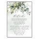 Das Design besticht durch einen Blumenstrauß mit Aquarellgrün, Eukalyptus und einen Sukkulenten über einem staubigen blauen Aquarellspritzer. Das Design bietet auch die Flecken von lackiertem Gold und Grün. Diese Vorlage verfügt auch über ein modernes typografisches Layout. Sie können die Informationen vollständig anpassen und bei Bedarf sogar noch mehr auf die Rückseite hinzufügen. Anzeigen der Auflistung auf dieser Seite, um passende Elemente in diesem Design zu finden.