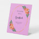 Aquarell Blumengrün in Gold Rahmen Hochzeitsschild. Das elegante Design besticht durch eine schlichte Silhouette von Blume und Pflanzen, die in Gold gerahmt sind, im klassisch minimalistischen Stil. Wasserfarbe Schöne Zinnien und Pansy Blume. In der Kollektion finden Sie auch passende Produkte mit diesem Design.