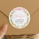 Dieser elegante Rundaufkleber präsentiert üppige Gartenfloralen und einen dünnen Bogen - genau richtig für Ihr Baby in Bloom Babydusche. Benutzen Sie es für Taschen, Gläser, Kerzen, oder danke Ihnen Notizen, um Ihr Thema schön zusammen Krawatte. Personalisiert und leicht zu koordinieren mit der Erholung Ihres Party Wesentliche.