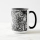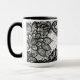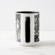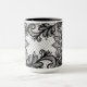 BlumenKaffeetasse der spitze-B&W mit rotem Innenraum. Einzigartiges schwarzes u. weißes Designerküchen-Geschirr u. -Sets