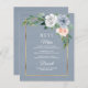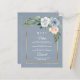 Dusty Blue Blush Pink Blumenkarten - mit einem dustig blauen Aquarellhintergrund mit einem vergoldeten Rahmen in Eukalyptus und Grün mit Blumenelementen in Grau/Weiß, staubblau und Rosa/Pfirsich in Rosa/Rosa. Anzeigen der entsprechenden Auflistung auf dieser Seite, um passende Produkte zu finden