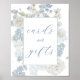 Karten und Geschenke Schild mit einem Aquarellstreifen von weichen blauen Blumen, um die Sammlung im Adore Paper Co. Zazzle Shop gefunden.