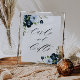 Aquarellfarben verstaubte blaue und marineblaue Blume und schwarze Schriftzeichen.