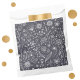 Delikate botanische Blume-Zeichnungen in Weiß auf einem dunkelgrauen Kalkboard-Hintergrund. Herrlich koordinierende Gefälligkeitstaschen, um Ihren Feiern zu entsprechen.