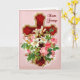 Das Vintage Kreuz aus Rot und Gold mit einer Fülle hübscher Blume wurde sorgfältig retuschiert, um die wunderbaren Details zu verdeutlichen. Es gibt weiße Ostern-Lilien und üppig rosa Rosen. Die Kartenvorderseite hat einen reichen rosa Hintergrund. Eine schöne Osterkarte, die für Sie bereit ist, sich im Inneren zu personalisieren.