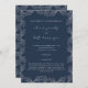 Elegantes, blumengeschmücktes minimalistisches Wildblume-Design in Navy Blue, Vorder- und Rückseite Einladung für den Winter, Hochzeit im Herbst. Es bietet einen romantischen Look mit handgeschriebener Schriftzeichen.