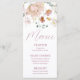 Aus unserer Soft Wildblume Kollektion machen Sie aus Ihrem Event einen Vorzug mit diesen atemberaubenden Menükarten. Das Aquarell-Motiv besteht aus rosa, rot, creme und grün. Einfach mit Ihren Menüdetails personalisieren. Viele Größen zur Auswahl.