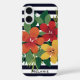Blumenmuster auf schwarzen und weißen Streifen Per iPhone 16 Hülle
