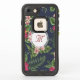 Schönes Blumenmuster des Hibiskus auf dunklem Hintergrund. Ausgereifte und feminine LifeProof Case mit Monogramm in weißer, runder Form. Sie können den Text (Schriftart, Farbe, Größe und Position) ganz einfach ändern, indem Sie auf die Schaltfläche Anpassen klicken.