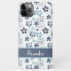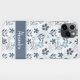Das Muster ist mit blauen und türkisfarbenen Blume gestaltet. Personalisieren Sie Ihre Telefonzelle mit Ihrem Namen.