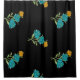 Blumenmuster Türkis Korallengrün auf schwarz Duschvorhang
