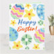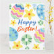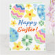 Dieses Design zeichnet sich durch ein blumengeschmücktes Ostereimuster mit modernem Text aus.