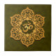 Ein dunkelgelbes Omsymbol sitzt nach innen von einer stylised Lotos-Blume. Das Kreismuster wird hervorgehoben, um einen hellen Glanz auf der Oberfläche zu schaffen, die auf einem dunkelgrünen Hintergrund sitzt. Sechs elegantes Blätter von der Mitte des Entwurfs heraus erreichen, um ein schönes symmetrisches Muster zu schaffen. Dieser stilvolle Fliesenentwurf ist eine auffallende Darstellung dieses geistigen Symbols.