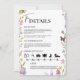 Blumenorden der Wildblumen des Tages Hochzeitskarten | Rustikale Botanische Zeitleiste Beilage Führe deine Gäste durch jeden besonderen Augenblick Deiner Feier mit unserem Blumenorden Boho Wildblumen Orden of the Day Wedding Enclosure Cards! Diese wunderschönen Karten sind so konzipiert, dass sie Ihre Haupteinladung begleiten, mit lebendigen Wildblumen und üppigen botanischen Elementen, sodass sie der perfekte Weg sind, Ihre Hochzeitstage-Zeitachse zu teilen. Diese Tageskartenbestellung ist ideal, um Ihre Gäste gut zu informieren und sie können sich mühelos an den Terminplan Ihrer Hochzeit anschließen. Die charmante Wildblume und das boho blumengeschmückte Design schaffen ein romantisches und einladendes Ambiente, das sich perfekt für Feiern im Freien, Party im Garten, Scheunenhochzeiten oder ein anspruchsvolles und dennoch entspanntes Event eignet. Das Einlegen dieser Karten mit Ihren Einladungen hilft den Gästen, ihren Tag zu planen und jedes aufregende Ereignis zu antizipieren. Diese blumengeschmückten Kapselkarten können Sie ganz einfach an Ihren Hochzeitstag anpassen, einschließlich der wichtigsten Termine für die Zeremonie, Cocktailstunde, Dinner-Empfang, Tänze und andere besondere Veranstaltungen. Sie können die Schriftart, Farben und das Layout individuell gestalten, um die einzigartige Farbpalette und den Stil Ihrer Hochzeit zu befriedigen. Wählen Sie aus Zazzle's vielfältigen Premium-Papiertypen, von eleganter Matte bis hin zu schimmernder Perle, um Ihren Gehäusekarten ein luxuriöses Ambiente zu verleihen. Koordinieren Sie diese wunderschönen Blumenbecher Wildblumen Orden des Tages Hochzeitskarten mit passenden Gegenständen aus Ihrer vollen Hochzeitsbriefmarkensuite, einschließlich Einladungen, RSVP-Karten, und danken Sie den Notizen für ein absolut zusammenhängendes und unvergessliches Ereignis von Anfang bis Ende. Klicken Sie auf "Jetzt individuell anpassen", um Ihre floralen Boho Wildblumen Orden der Hochzeitskarten zu personalisieren und den Hochzeitstag schön zu präsentieren! Blumenorchester, Hochzeitskarte für die Wildblume, botanischer Hochzeitsplan, rustikale Reihenfolge der Veranstaltungen, boho blumengeschmückte Eintrittskarte, individueller Hochzeitstag, Hochzeitskarte für die Wildblume, floraler Veranstaltungskalender, Garten Route, böhmische Reihenfolge