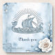 Blumenrahmen mit Rose und keltisches Design. Das Bild ist mit einem zarten Blumenrahmen mit einer weichen, traumhaften Ästhetik versehen. Weiße Rosen mit subtilen beigefarbenen Zentren und gedämpften blau-grünen Blätter schmücken die links Oben- und Unten-Rechts-Ecken. Der Rahmen selbst ist aus einem eisblauen, keltisch inspiriert Design gefertigt. Im Hintergrund ist ein schwaches, kreisförmiges keltisches Knoten-Muster sichtbar.