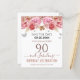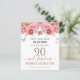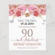Girly Glitzer, Jahrtausende pink Hintergrund, mit extravagantem Skriptnamen Typografie. Happy 90 und fabelhafte Geburtstagsdesign Vorlage. Rosa Rosen und Schmetterling oberer Rand. Ideal für 90. Feiern. Save the Date feiern Erinnerung.