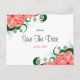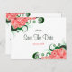 © Sunny Mars Designs - Blumenmuster Hibiskus: Pink on Custom White Wedding Save The Date Post Cards - Elegante, klassische, trendige, stilvolle, Save the Date Hochzeitserklärung Postkarte mit einem schönen hübschen rosa Wirblen tropischen Hibiskus Design.