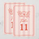Rote Linie Kunst florale botanische Illustration über rosa Streifen Hintergrund mit rotem Text und handgezeichnet Rahmen.