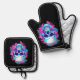 Blumenschädel im Vaporwave-Stil Ofenhandschuh & Topflappen-Set