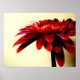 tiefrote Gerbera gegen weiche gelbe Wand.