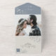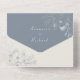 Elegantes silberfarbenes und staubblaues, chinoiserie inspiriertes, blumengeschmücktes Ganzes mit einem zarten botanischen Design und einem Foto zurück. Ideal für romantische Hochzeiten mit einer Touch Vintagen Charmes. Passen Sie Ihre Hochzeitsdetails an. Dieses Einladungs-Design ist ideal für Paare, die eine raffinierte, einfach zu versenden Einladungs-Option suchen. Bitte beachten Sie: Diese Einladung erfordert einen separaten Briefumschlag. Wir empfehlen die Verbindung mit einem A9-Umschlag (5,75" x 8,75") für die beste Passform.