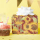 Dieses moderne, blumengeschmückte Papier zeichnet sich durch ein Muster gelber Wasserfarben-Sonnenblumen auf einem roten Hintergrund aus. Entworfen von dem weltbekannten Künstler Tim Coffey.