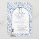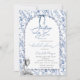 Dieses elegante Interieur besticht durch einen zauberhaften blauen Bogen, ein Champagnerglas mit Rose, Perlen und blauen Blumen, das sich perfekt für ein "etwas blaues" Brautparty eignet. Die faszinierenden Blumenmotive und die sanften blauen Farbtöne flüstern von etwas Altem, etwas Neues und natürlich etwas Blau. Diese Brautduscheinladungen sind einfach auf Ihre Veranstaltung zugeschnitten, indem Sie einfach Ihre Details hinzufügen.