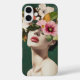 Ein faszinierendes digitales Kunstwerk einer Frau mit Blume und üppiger Vegetation, das ihr Gesicht schmückt, ihre Augen verschleiert und ein Gefühl von Geheimnis und Verbindung zur Natur schafft. Ihre sanften, stilisierten Merkmale kontrastieren mit den pulsierenden Blume und dem blühenden Laub, während der üppige grüne Hintergrund die Schönheit ihrer Blumenkrone unterstreicht. Die Komposition verbindet Surrealismus und Eleganz und verkörpert eine Harmonie zwischen menschlicher Form und Natur.