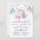 Schönes, mythisches und verzaubertes farbenprächtiges Regenbogen-Einhorngesicht und Blumen-Baby-Dusche Einladung. Dieses süße Design zeichnet sich durch eine weiche Aquarelltöne aus, die mit wunderschönen blumengeschmückten Blume und Blätter in Rosa, aquamarin, lila, orange und gelb gehalten ist. Die Imitate Rosa und Gold Glitzer Akzente verleihen dem Ganzen einen zauberhaften und verzauberten Look. Die Rückseite ist mit einem farbenfrohen Regenbogenmuster versehen, das die Vorderseite wunderschön ergänzt. Alle Illustrationen in dieser magisch verzauberten Wasserfarben-Einhorn-Baby-Dusche Einladung sind handgezeichnet Original-Kunstwerke von Moodthology. Sie können die Textgröße, Textfarbe, Schriftart und Layout für Ihre individuelle Designvorliebe anpassen.
