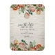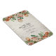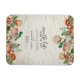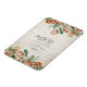 Eine Hochzeit speichert den Datums-Magneten mit einem Bild von Blume und Grün über einen weißen Backstein-Hintergrund oben und unten.