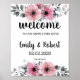 Das Poster mit üppiger botanischer Vegetation und eukalyptus-Blätter in Aquarelltönen heißt Sie herzlich willkommen und heißt Sie herzlich willkommen. Das Poster heißt "Herzlich willkommen zu uns, immer danach", Ihr Name und Ihr Hochzeitstag in einer schicken Kalligraphie.