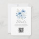 Blaue florale QR Code Hochzeitsdetails Gehäuse flache Karte. Leicht zu ändern den Text und fügen Sie Ihre URL zum QR-Code. Hübsche, elegante Aquarellblume mit abgerundeten Kanten.