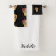 Blumentag des schwarz-weißen Badehandtuchs, mit einem bunten Sugar Skull und Schriftzeichen-Design. Mit einer schwarzen, anpassbaren Schrift können Sie Ihren eigenen Namen hinzufügen. Eine angenehme Ergänzung zur Badezimmerdekoration.