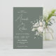 Diese elegante Hochzeitseinladung besticht durch einen sanften, grünen Hintergrund mit sanften weißen Aquarellblumen, die sich ideal für Paare eignen, die eine moderne rustikale oder naturlich inspirierte Feier planen. Das minimalistische Layout mit sauberen Skripten und Serifentypografie schafft eine zeitlose und raffinierte Ästhetik. Dieses Design ist perfekt für Herbst-, Garten- oder Botanische Hochzeiten. Es vereint Romantik und Einfachheit. Der gesamte Text ist vollständig editierbar, um Ihre Veranstaltungsdetails Anzug. 🌿 Highlights: Schöner grüner Hintergrund mit weißen Aquarellfarben und Eukalyptus Eleganter moderner Schriftart, der puristisch-minimalistische Anordnung mit vertikaler Ausrichtung verbindet Ideal für rustikale Hochzeiten, Gartenveranstaltungen oder Herbstveranstaltungen