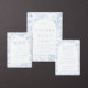 Elegante klassische hellblaue Chinoiserie Porzellan Blumenmuster Frühling oder Sommer Hochzeitsweinflaschen Etiketten mit frisch vermählten Nachnamen.