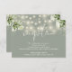 Diese elegante, grüne Hochzeitskarte mit hübschen Saitenlichtern und blühender Vegetation kann mit Ihren Informationen in schicker Typografie personalisiert werden. Entwickelt von Thisisnotme©