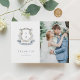 Elegantes und rustikales, handgemaltes Aquarelldesign von Shelby Allison mit einem Familienwappen-Schild und Monogramm, umgeben von faszinierenden Blume und Blattdetails.