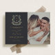 Dieses einladende Hochzeitsdesign verbindet moderne Eleganz mit zeitlosem Charme, perfekt für Paare, die nach einem schicken und eleganten Ambiente für ihren großen Tag suchen. Mit einem raffinierten Wappen mit zarten Blumen auf schwarzem Hintergrund strahlt die Einladung Luxus und Grandeur aus. Die Verwendung von Gold für die Namen und Details des Paares verleiht dem Paar eine Touch von Opulenz, während das angrenzende Foto des Ehepaares eine personalisierte, herzliche Touch hinzufügt, was die Einladung stilvoll und intim macht. Ideal für zeitgenössische Hochzeiten mit klassischer Drehung, verbindet dieses Design Tradition nahtlos mit Trendkultur und ist somit ein Muss für jedes modische Paar.