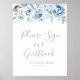 böhmische Hochzeit mit blauen Blumen, Gästebuchschild. Text und Farben können bearbeitet werden.