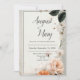 Feiern Sie Liebe mit zeitloser Gnade mit dieser Blush Blom Elegance Hochzeitseinladung. Das Design ist mit einem klaren, cremefarbenen Hintergrund gerahmt in einer weichen Marmorstruktur und mit floralen Aquarellbildern in warmen Pfirsich-, Rost- und Elfenbeintönen geschmückt. Reiche grüne Blätter und zarte weiße Blüten sorgen für ein romantisches Gartenambiente, ohne die minimalistische Gestaltung zu übertreiben. Diese elegante Einladung eignet sich hervorragend für Hochzeiten im Frühjahr und Sommer, Verlobungsfeiern, Brautpartys oder sogar Verleihverlängerungen. Sein vielseitiges und raffiniertes Aussehen wirkt sowohl für klassische als auch für zeitgenössische Hochzeitsthemen wunderschön. Die ausgewogene Zusammensetzung bietet viel Raum für die individuelle Formulierung und macht es einfach, für Ihren besonderen Tag zu personalisieren. Ob Sie eine blumengeschmückte Gartenzeremonie planen oder eine elegante Feier im Inneren planen, dieses Design bringt Ihnen eine sanfte, romantische Touch in Ihre Hochzeitsgeschenksuite.