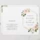 Le programme de mariage en fleurs blanches présente des fleurs d'aquarelle peintes dans un feuillage rose, blanc et vert avec des cadres en or. REMARQUE : Vous devrez les plier en deux à leur arrivée.