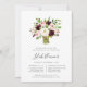 Les élégantes invitations au baptême, au baptême ou à l'accouchement sont ornées d'un bouquet de fleurs d'aquarelle de marsala rose rousse et bordeaux, avec un feuillage botanique vert luxuriant et des feuilles. Personnalisez votre cérémonie religieuse et les détails de votre fête sous un mélange chic de caractères de bloc, serif et calligraphie.