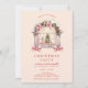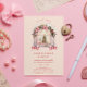 Blush-Bogen auf schneebedeckten Fensterbildern als Einladung für ein Weihnachtsfest-Party