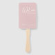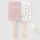 Blush Calligraphy Pktogramme Wedding Program Hand Fan Einfach, modern und minimalistisch im Stil, rot gefärbte Hochzeitsfeier mit herausnehmbarer Kalligraphie-Position. Auf der Rückseite des Programms befinden sich die Einzelheiten der Hochzeitsfeier und Ikonen oder Piktogramme in schwarz.