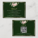 Blush Floral, QR Code - Emerald Enclosure Card features a blush pink floral bouquet on an emerald background framed with ribbon, details for more information on the front and QR code on the back. Designed to coordinate with the "Floral & Foil Botanical Wreath" Wedding Collection. To change details, click «Personalize». To move the text or change the text size, font, or color click «Click to customize further»