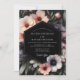 Embrace a dramatic and romantic atmosphere with this elegant floral design. Luminous blush, peach, and periwinkle anemones bloom against a deep, dark backdrop, creating a stunning chiaroscuro effect. Soft petals and delicate greenery are rendered in a soft, painterly style, offering a touch of sophisticated drama for your special union.