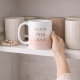“Bloom With Grace” displayed in taupe serif lettering over a wraparound blush watercolor wash on a white base. Designed for desks, kitchen counters, or morning routines, this mug adds soft color layering and refined typography to everyday drinkware use.