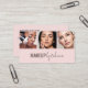 Modern Blush Pink 3 Photo Business Card with QR Code and Social Icons for Makeup Artists - Create a great first impression with this modern 3 photo business card for makeup artists, salon owners, and beauty professionals. The blush pink background pairs perfectly with the bold modern font and elegant script typography, with 3 social icons and 3 spaces for your model photos plus a customizable QR code for you to add any URL link. This fully personalizable and thoughtfully curated design will help give your brand that professional edge.