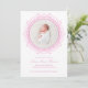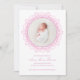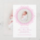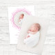 Announce your little one in a soft and timeless style with this blush pink newborn birth announcement featuring a delicate floral frame and elegant script typography. The front showcases your baby’s photo in a clean circular layout, creating a beautiful first impression.