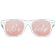 Stilvolle Sonnenbrille für die Braut, um Bride in einem hübschen weißen Skript-Schriftart mit rot-rosa und koral-ombre-Schattierungen Hintergrund.